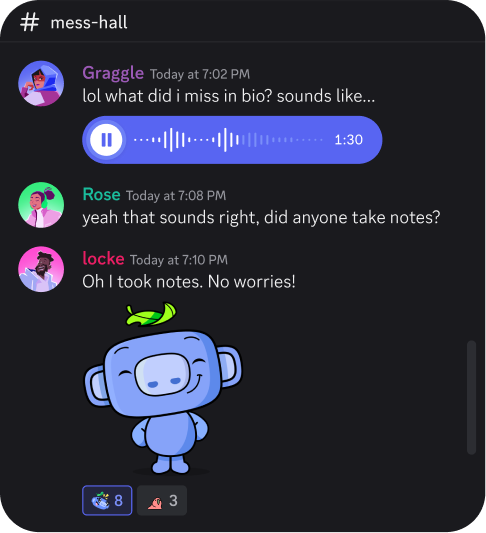 Discord servers help organize conversation into topic-based channels. Discuss that newest game release, share what you're up to, or talk about whatever — without clogging up a group chat.